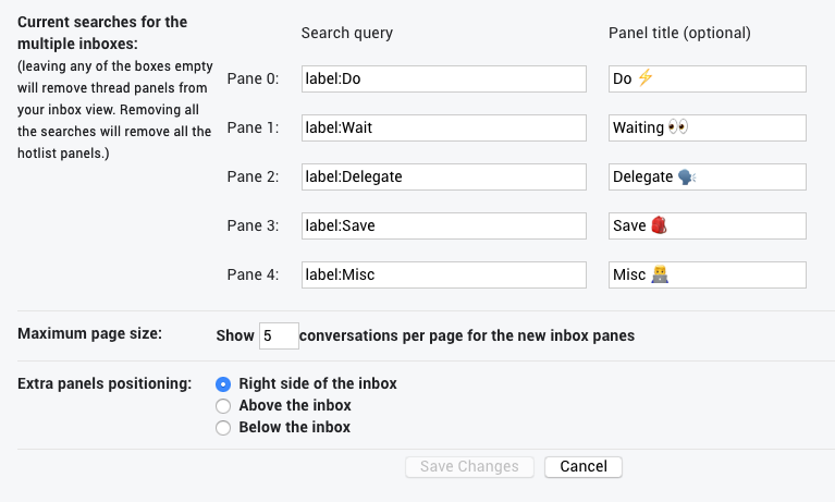 Pay attention that you don’t want to show more than 5 conversations per label for the New Inbox Pane.