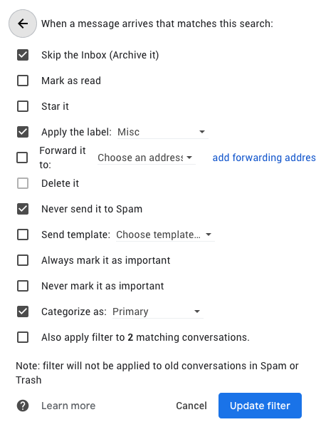 Creating various filters can save you a lot of time. For example, archiving various receipts or sorting emails by projects can significantly boost your productivity. Follow this guide to create those filters.